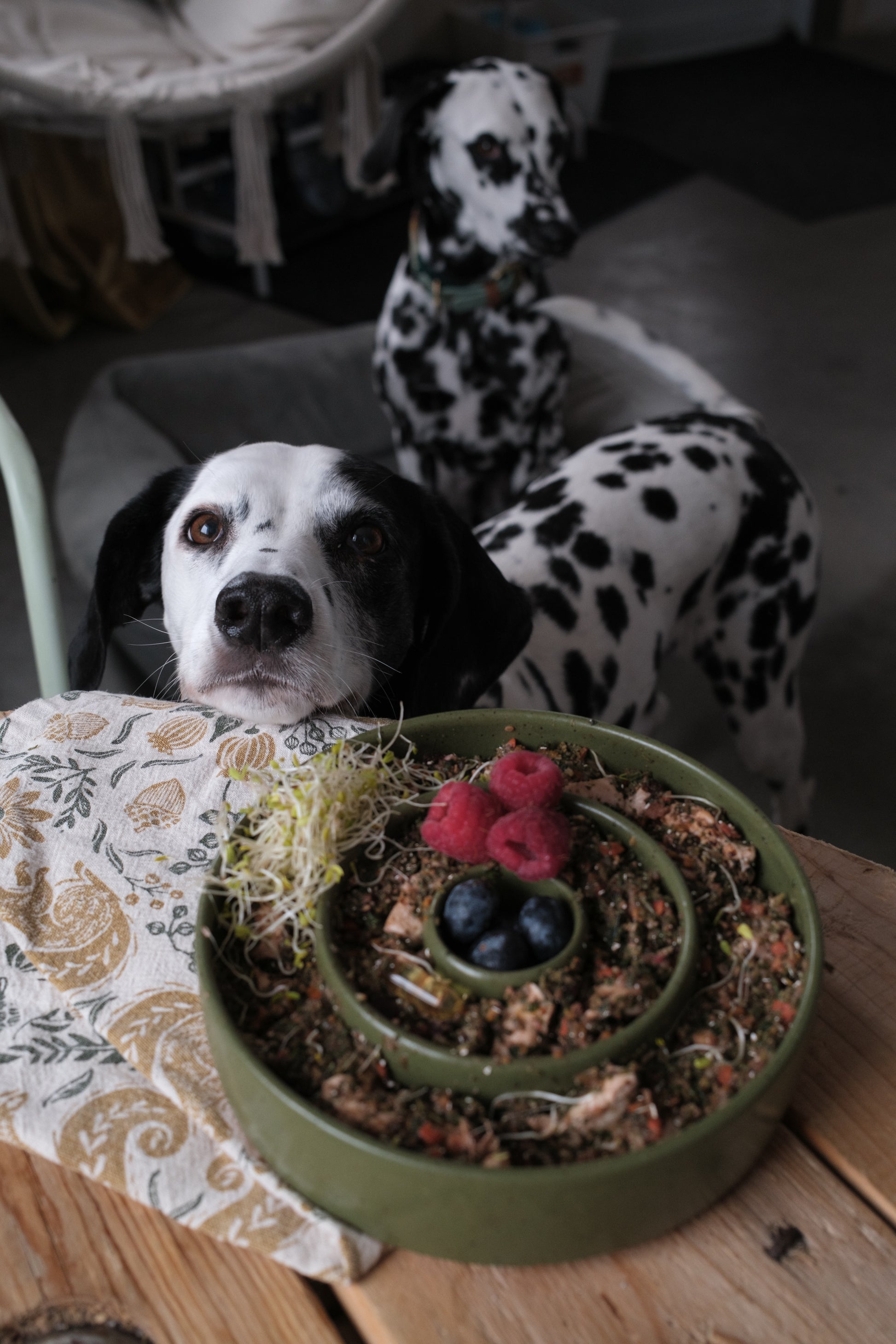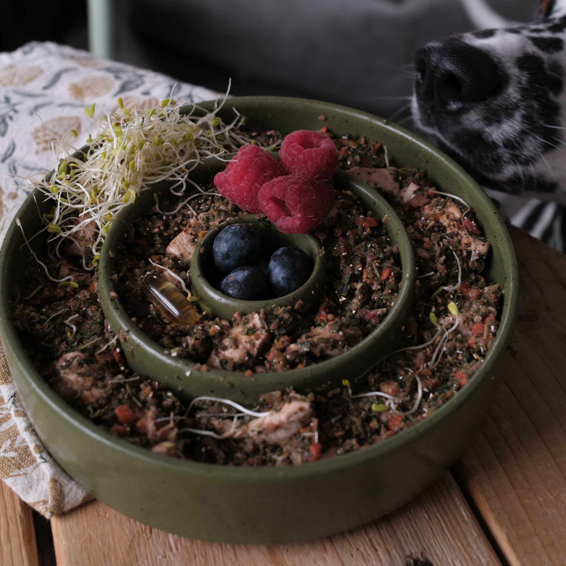 Bol en céramique fait à la main par Atelier.Boreal. Créer pour les besoins de nos animaux et tester par les miens depuis plusieurs années. Les bols ralentisseurs sont idéal pour les chiens gourmand ou simplement pour ajouter une stimulation mentale à celui-ci. La céramique est un matériel parfait pour les animaux qui mange de la nourriture crue, conçu sous les même techniques que la vaisselle pour humain.