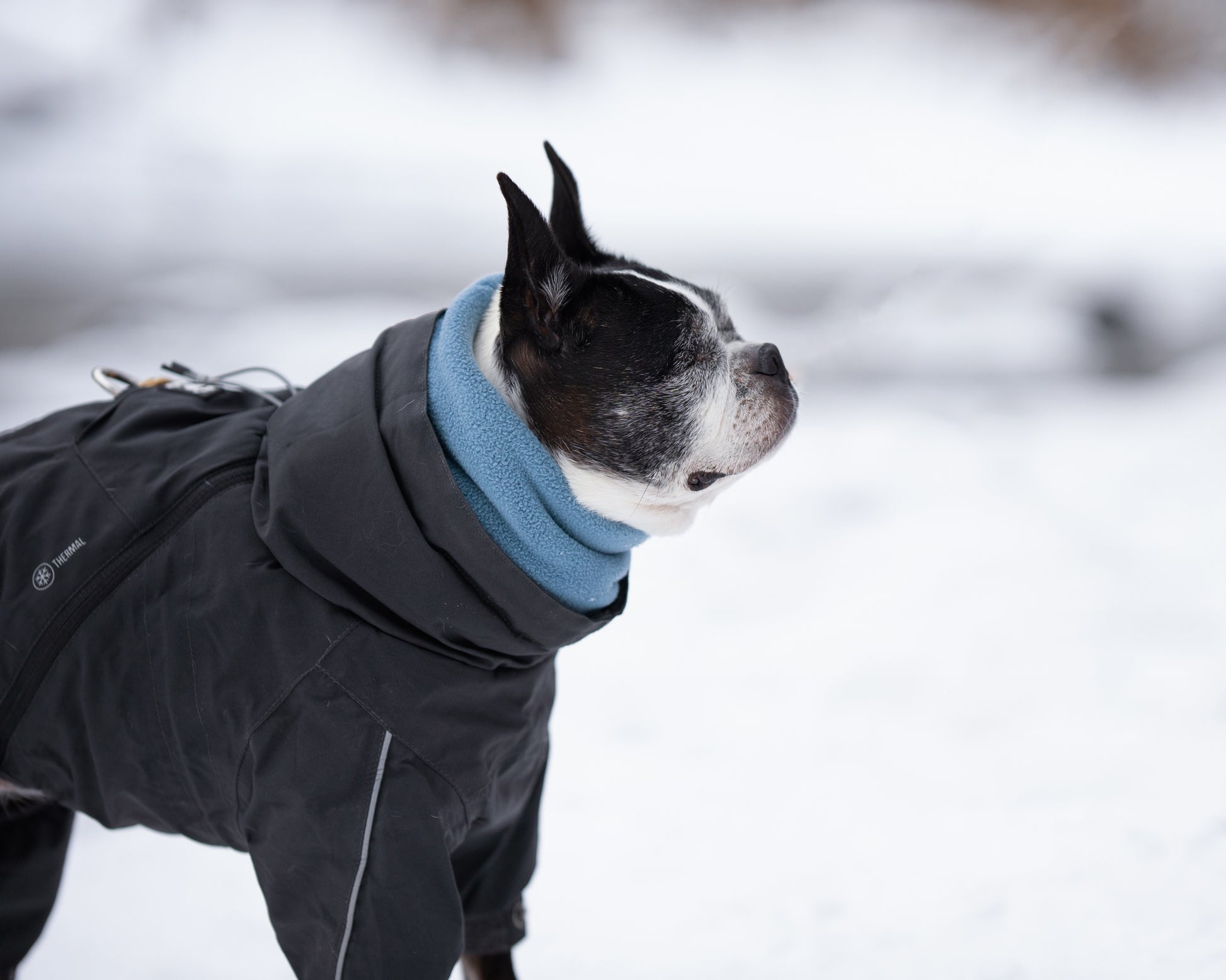 Ce que j'aime de ce type de snood, c'est qu'il peut servir à empêcher la neige d'entrer dans le chandail/manteau de votre chien.