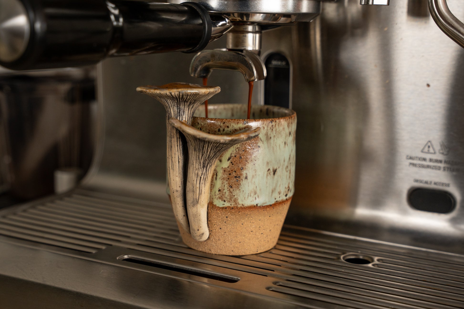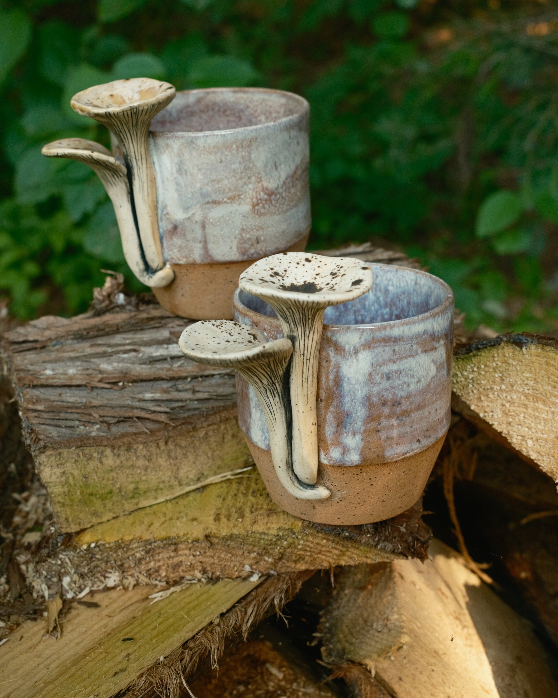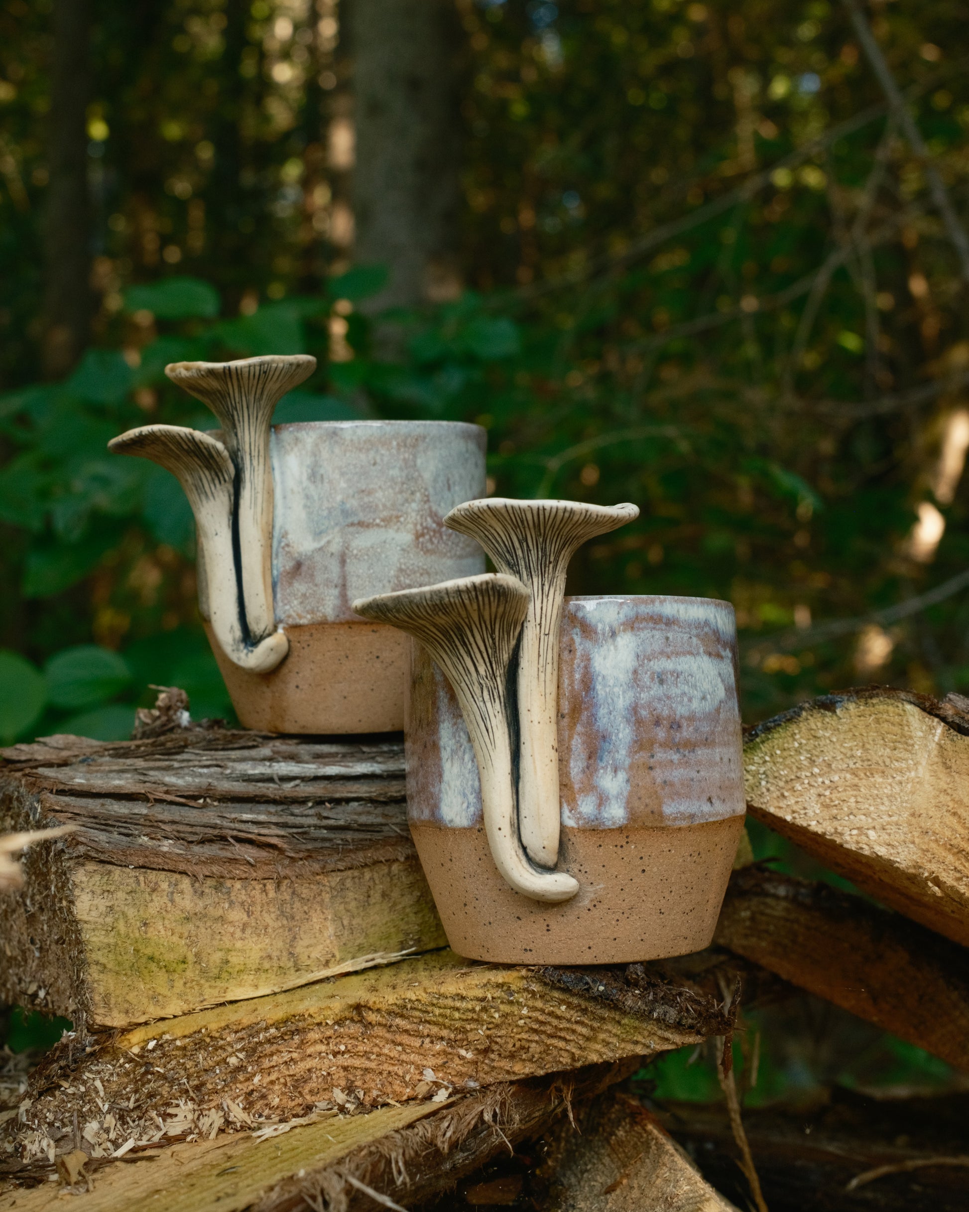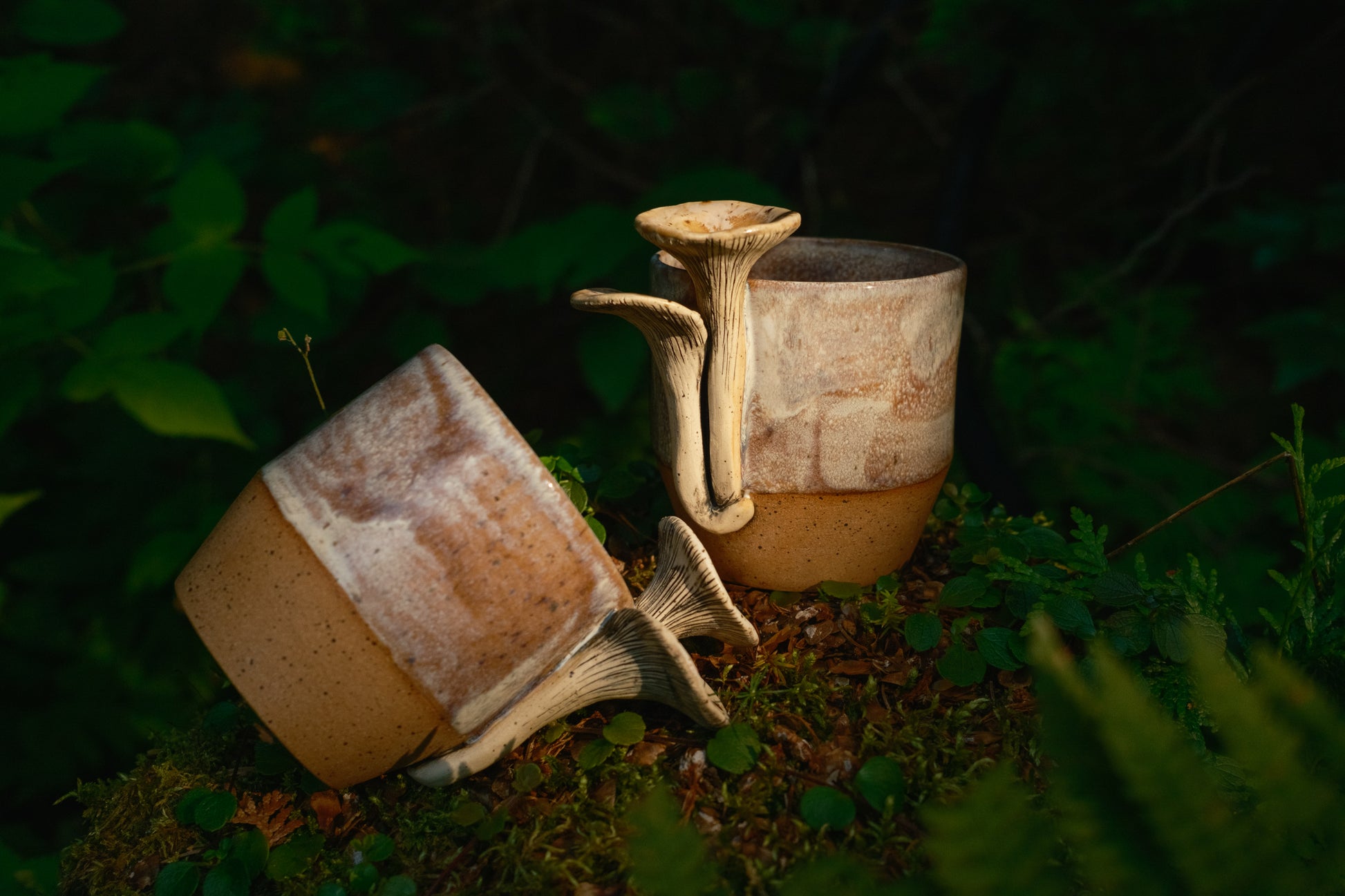 Bring a touch of woodland whimsy to your daily coffee or tea ritual with this handcrafted ceramic mug. Designed in my studio, this original creation features two sculpted mushrooms nestled along the surface — each one carefully hand-shaped, making every mug unique in its details and expression.